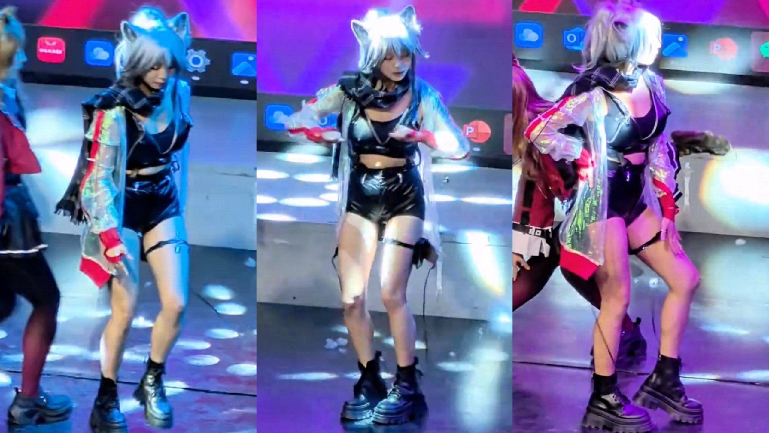 [Dance]A girl's hot dance in cat's costume in a garage|<like a cat>