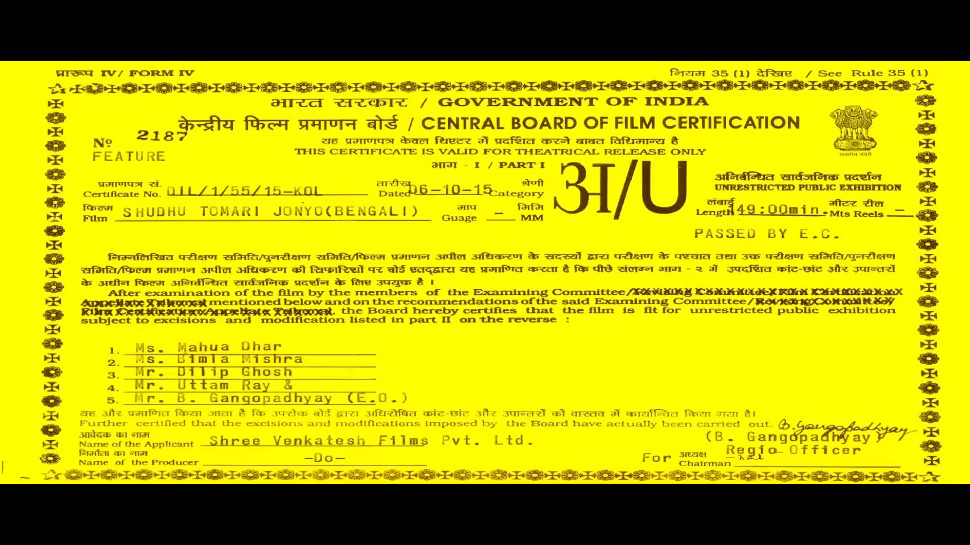 Shudhu Tomari Jonyo by Dev, Srabanti, Mimi & Soham (2015)