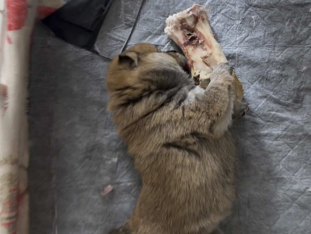 The solid little chubby dog takes a bath, which relieves stress, and he is so well-behaved if he doe