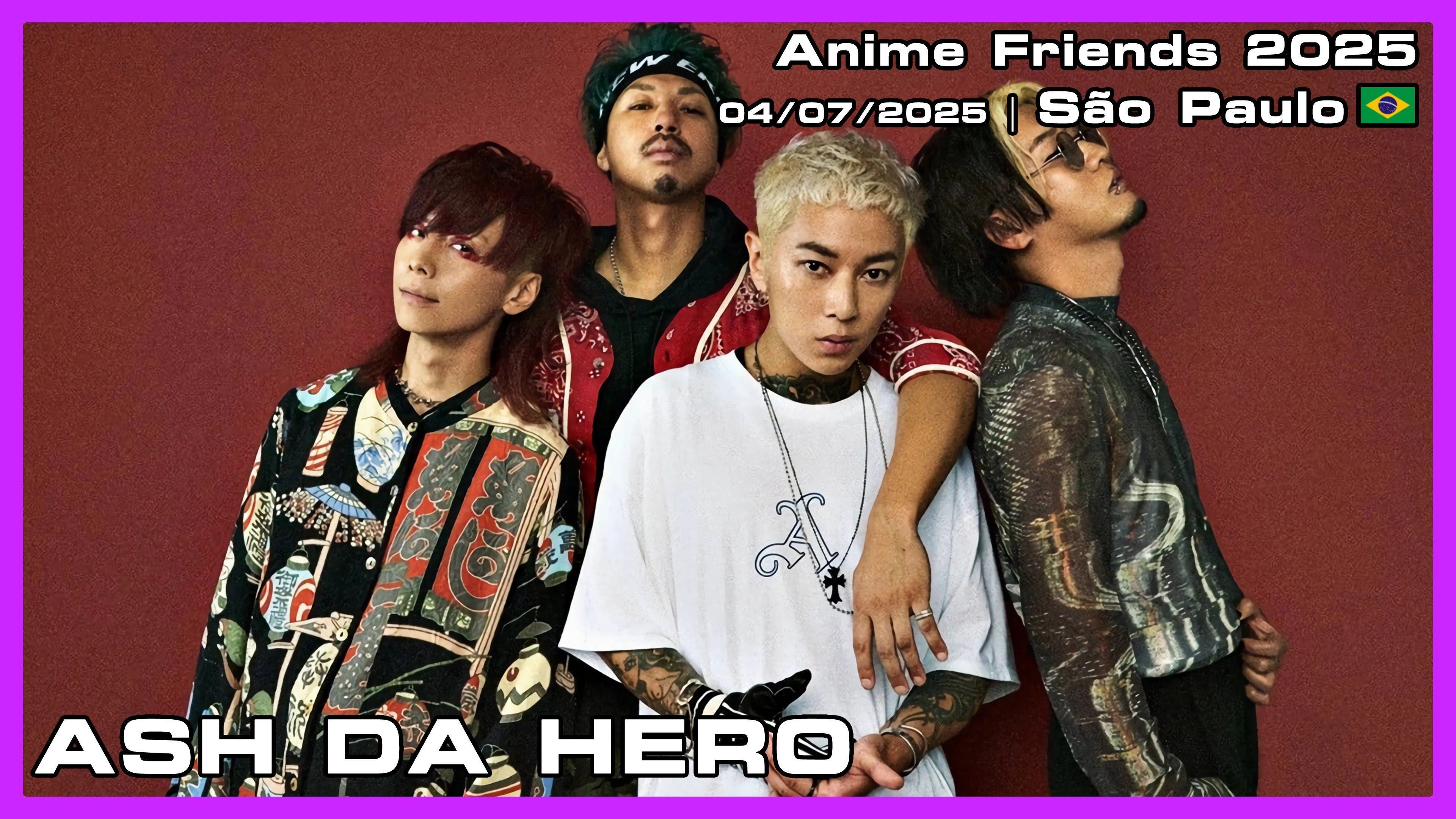 :: Informações: - Participante(s): ASH DA HERO [ASH (Vocal), Sato (Baixo), WANI (Bateria), Dhalsim (DJ), Ryo 'LEFTY' Miyata (Teclado)] - Evento: Anime Friends 2025 - Local: São Paulo (Brasil) - Data: 04/07/2025 :: Setlist: 1. Super Sonic 2. YELLOW FEVER DANCE 3. Hankou Seimei 4. BREAK THE CHAIN 5. Wrangler Beat 6. VANDALISM 7. Break Free 8. LA VIDA LOCA 9. Botanical Dance Club 10. BULL-UPPA 11. Meteora 12. TENGU 13. GO!!! 14. Cha-la head cha-la 15. Octave 16. Beast Mode 17. Judgement 18. Everything 19. PARADE 20. Judgement