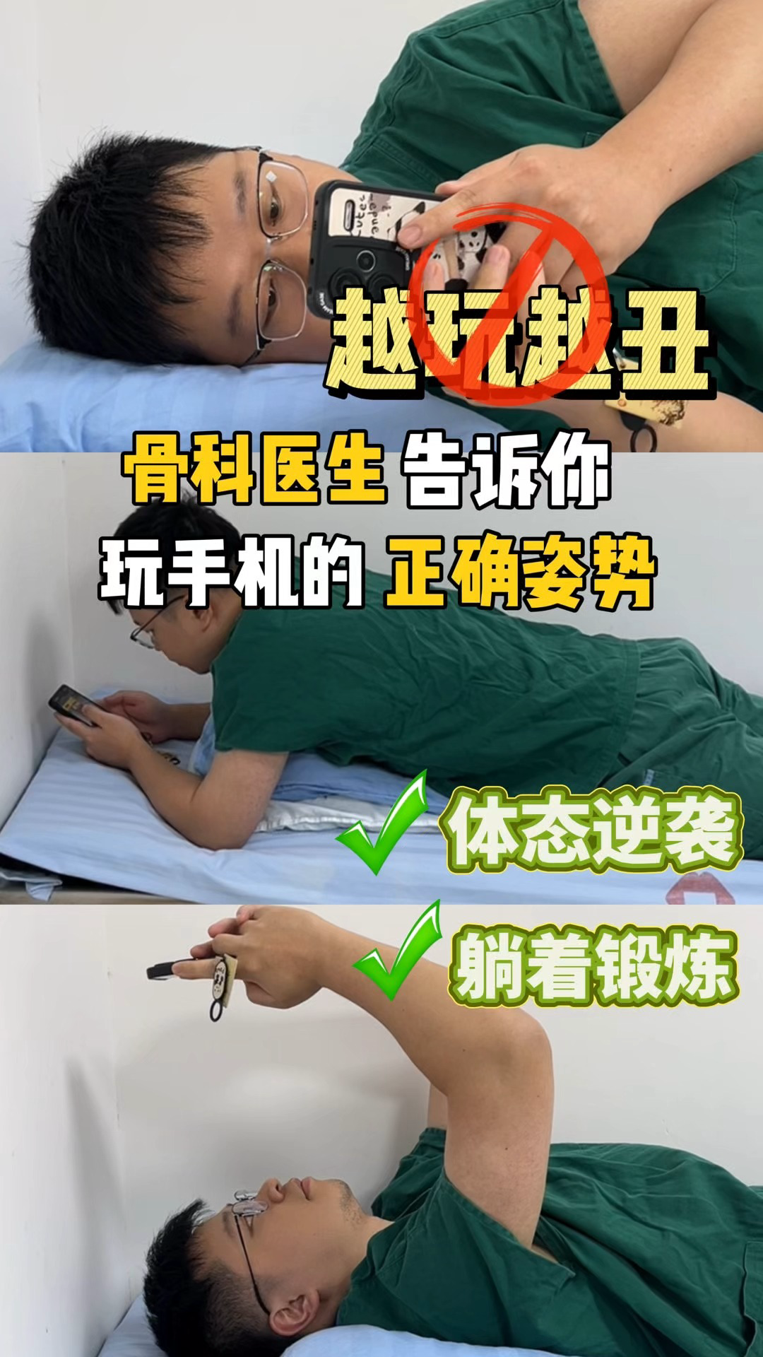 The correct posture for playing with mobile phone!