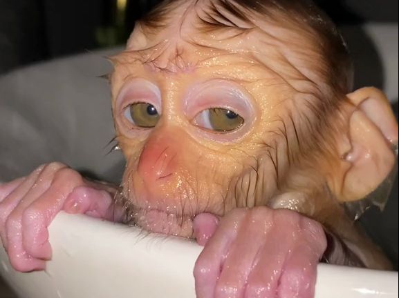 Little monkey: Dad, take it away quickly, this is not my cub!