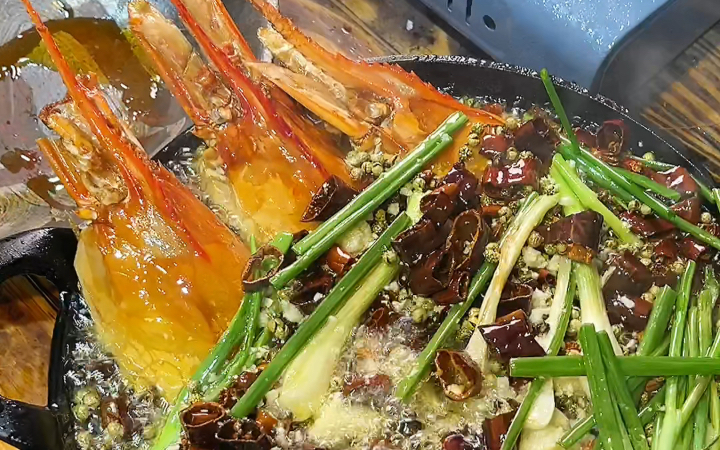 Thai food: Thai-style eating, happy jumping shrimp, crispy, tender, sweet, sour, spicy