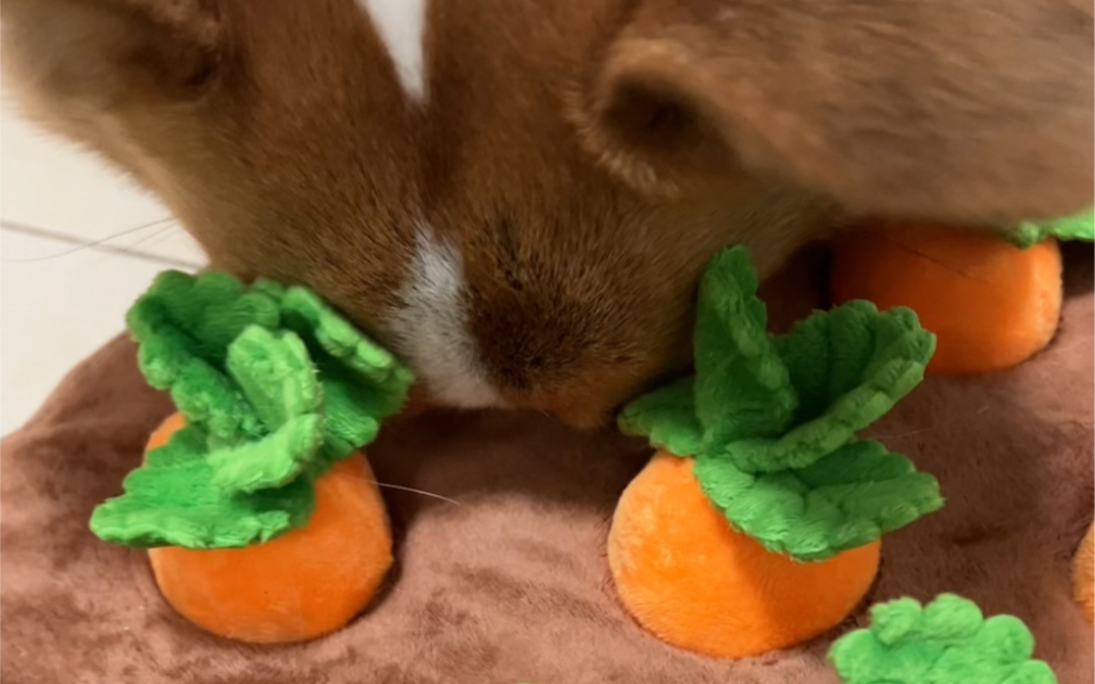 Give the puppy some light petting and eat a new snack that’s especially chewy.