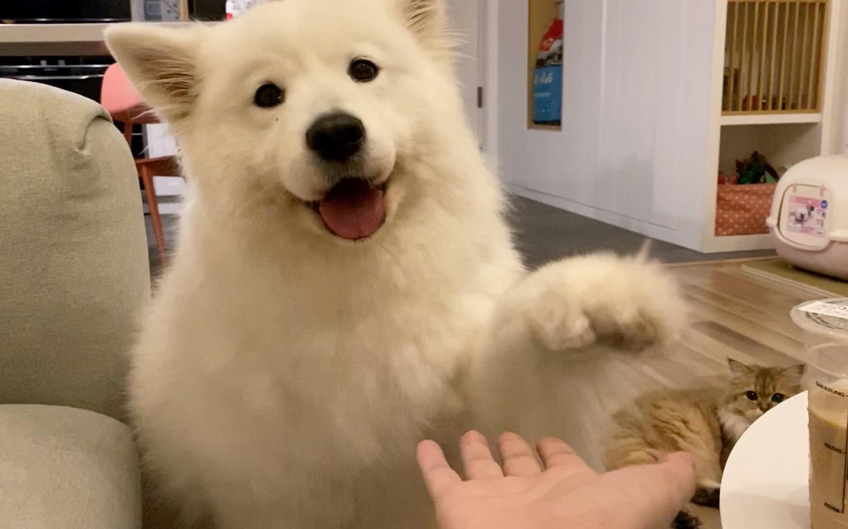 [Animals]Happy life of Golden british shorthair Mashu&Samoyed Ruantang