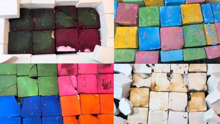 Dyed & Crunchy Plain Chalk Blocks And Jumbo Chalk ASMR😍