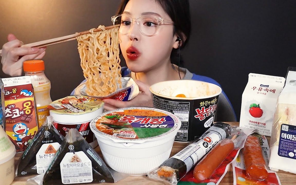 Mukbang | Fried Vegetables and Chicken Leg, Korean Rice Cake, Gimbap
