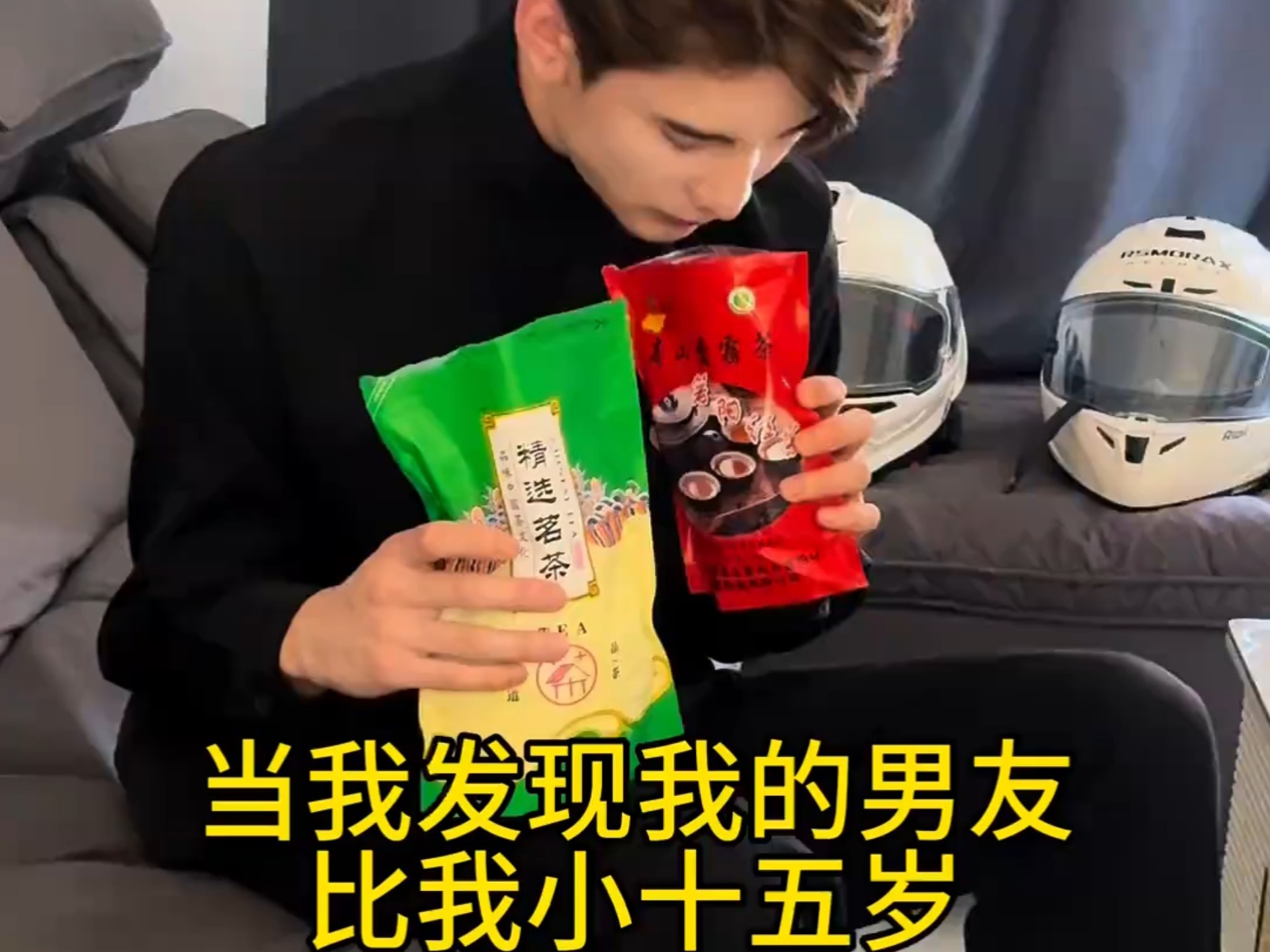 A good-looking delivery guy who looks just like Yi Yangqianxi is seen drinking water and munching on