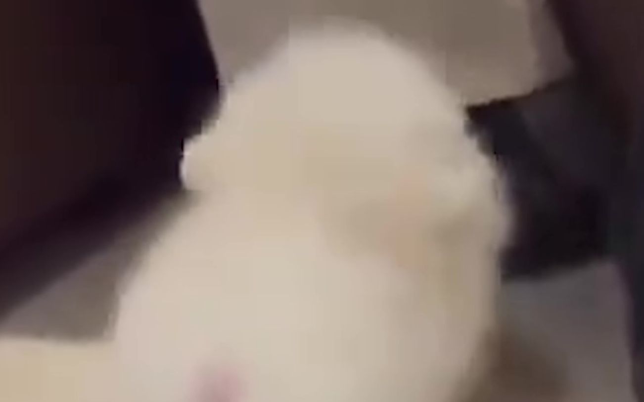The Pomeranian dog eats sausage rice cake and pork rice cake online. It’s so delicious to chew!