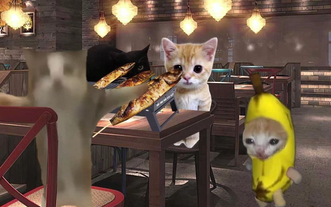 Banana Cat sells skewers and meets a big customer