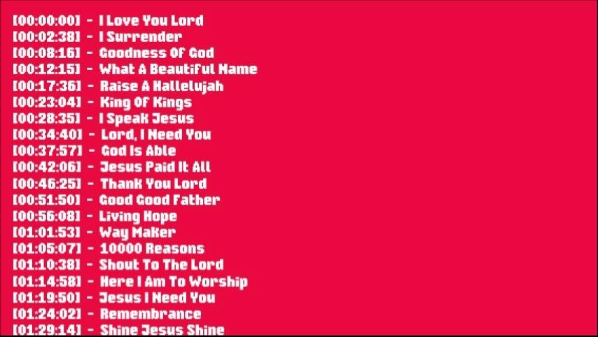 Christian Music Worship Songs With Lyrics Hillsong Playlist ✝🎶✝ Top 100 Christian Gospel Songs Matthew 16:18 And I tell you that you are Peter, and on this rock I will build my church, and the gates of death will not overcome it. • Christian Music Worship Songs With Lyrics ... ------------------------------------------------------------------------------------------------- Track list: [00:00:00] - I Love You Lord [00:02:38] - I Surrender [00:08:16] - Goodness Of God [00:12:15] - What A Beautiful Name [00:17:36] - Raise A Hallelujah [00:23:04] - King Of Kings [00:28:35] - I Speak Jesus [00:34:40] - Lord, I Need You [00:37:57] - God Is Able [00:42:06] - Jesus Paid It All [00:46:25] - Thank You Lord [00:51:50] - Good Good Father [00:56:08] - Living Hope [01:01:53] - Way Maker [01:05:07] - 10000 Reasons [01:10:38] - Shout To The Lord [01:14:58] - Here I Am To Worship [01:19:50] - Jesus I Need You [01:24:02] - Remembrance [01:29:14] - Shine Jesus Shine ------------------------------------------------------------------------------------------------- Welcome to Melodies of Worship – where worship music becomes a bridge to connect your soul with God’s love and divine presence. Our channel is not just a place to listen to music, but also a journey to discover inner peace, healing and undying faith through each melody. At Melodies of Worship, we bring diversity in worship music – from traditional hymns full of emotion, bearing the mark of sacred history, to modern, vibrant melodies, suitable for the breath of the times. Whether you are looking for tranquility in a busy day or thirsting for motivation to move forward, our music will help you experience the closeness and support of Faith. In addition to music, Melodies of Worship is also a meaningful sharing space, where you can find the stories behind each song, the profound messages conveyed through each lyric. We believe that music is not just a sound, but also a prayer from th