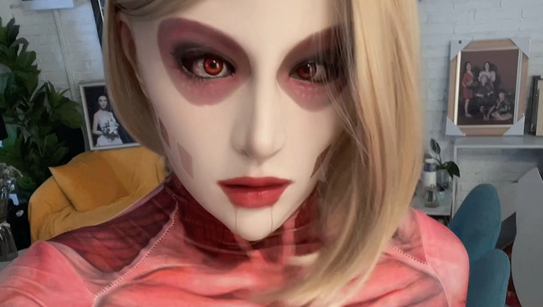 [Men disguised as women] Gently apply rouge makeup, whose son is it?