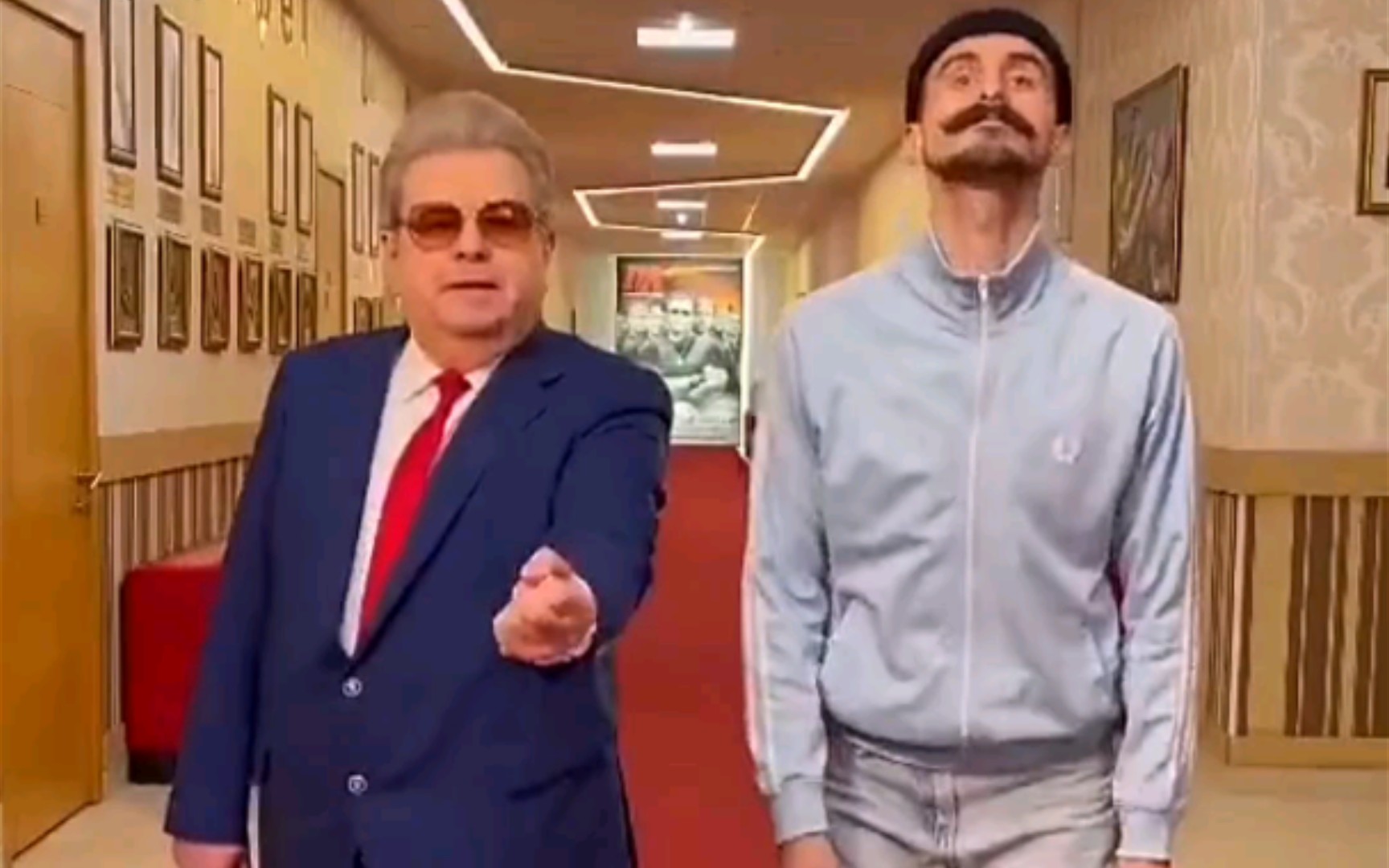 Cartoon "Tall Woman and Short Husband" A tall woman married a short husband. The newlyweds went shop