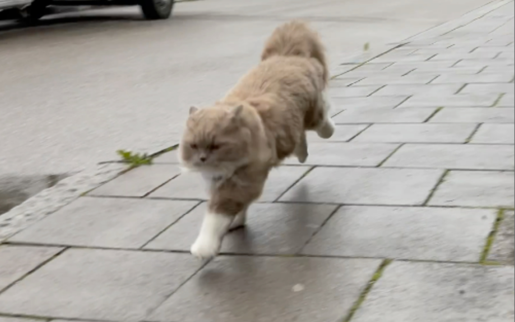 The little kitten couldn't catch up with its owner. He changed his tone of voice and cursed all the