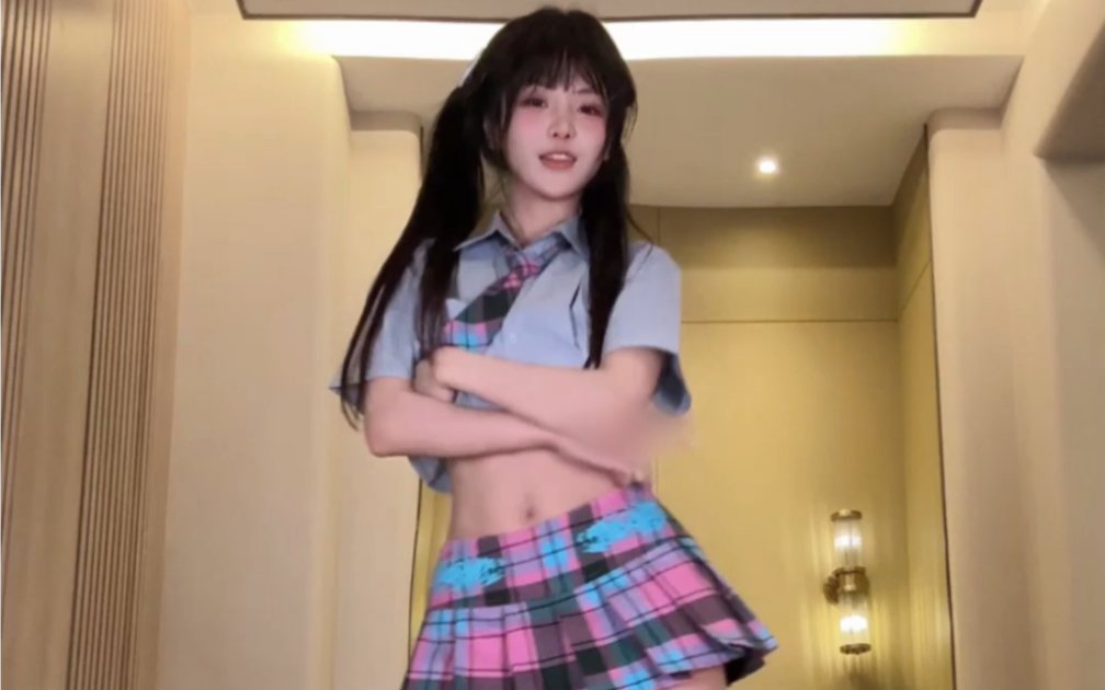 up down top and bottom shiny black barefoot plaid skirt vertical screen one-take