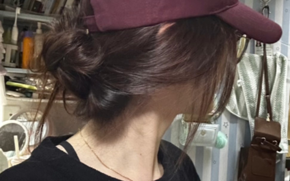 Use a rubber band to create a stylish low ponytail (the mirrored version is easier to master)!
