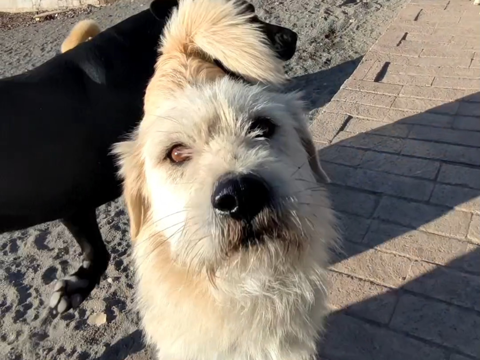 Dahuang treasures his only puppy so much that he only lets it play for a bit during mealtimes.