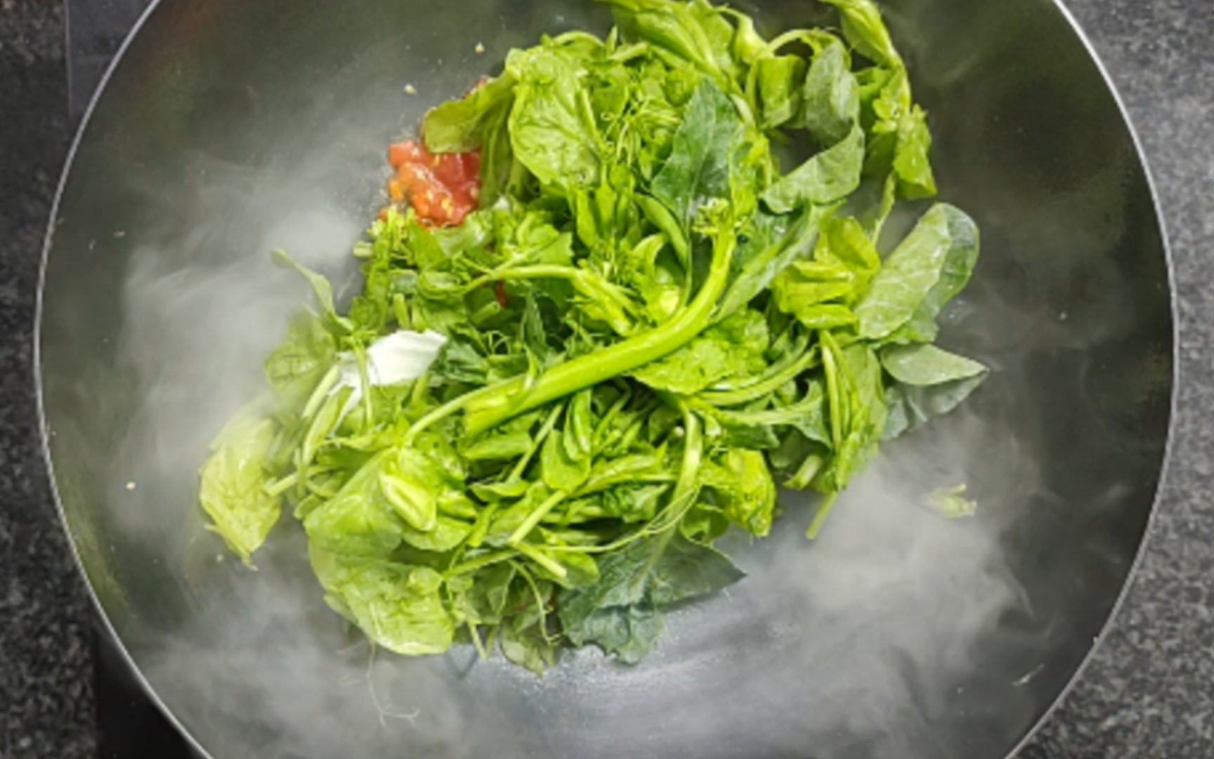 A girl stir-fries rice with her elbow—her nose is practically drooling!