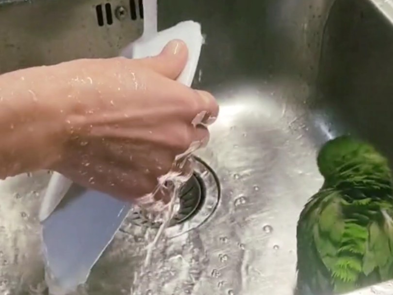 When the parrot realizes that it is not the enemy, but the owner's hand: