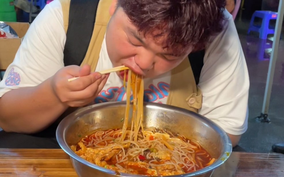 A handsome guy challenges himself to eat 7 taels of snail rice noodles. Can he finish it? The ending