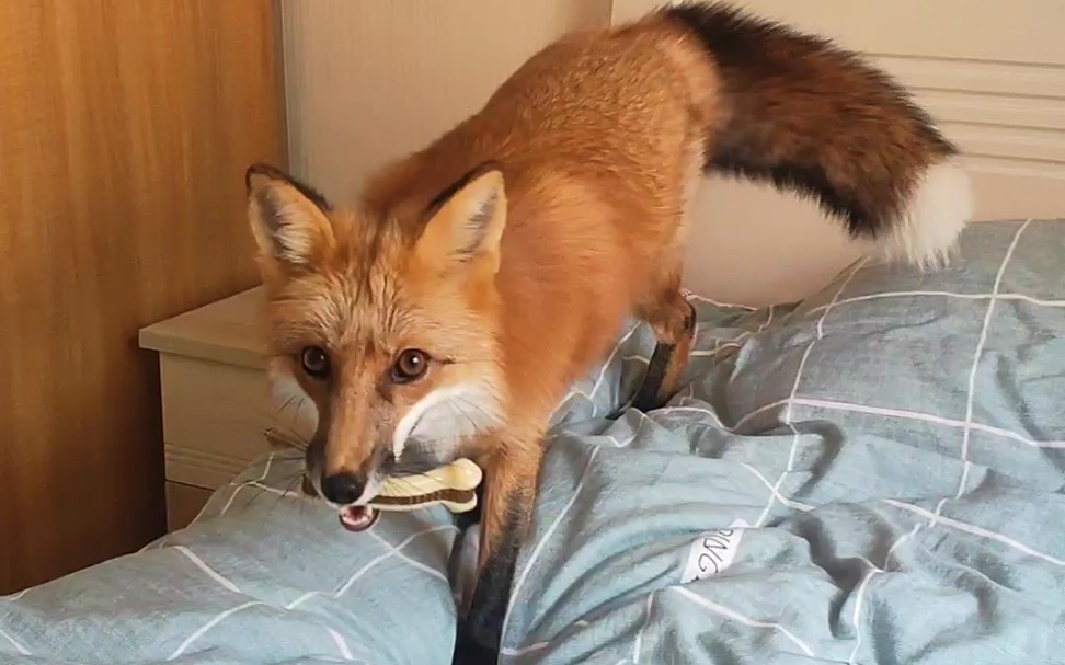 The tea fox is going in for the attack—ahhhhh! She’s taking charge, pinning his head and forcing a k