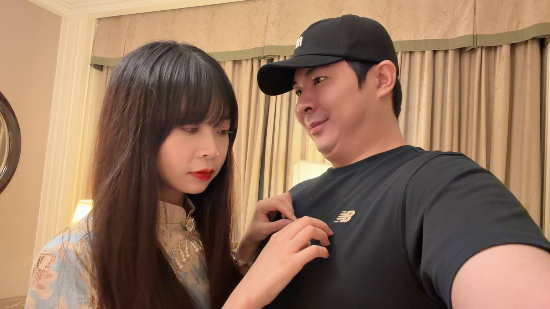 Prank! He pretended to take a shower in the hotel and suddenly appeared in front of his girlfriend..