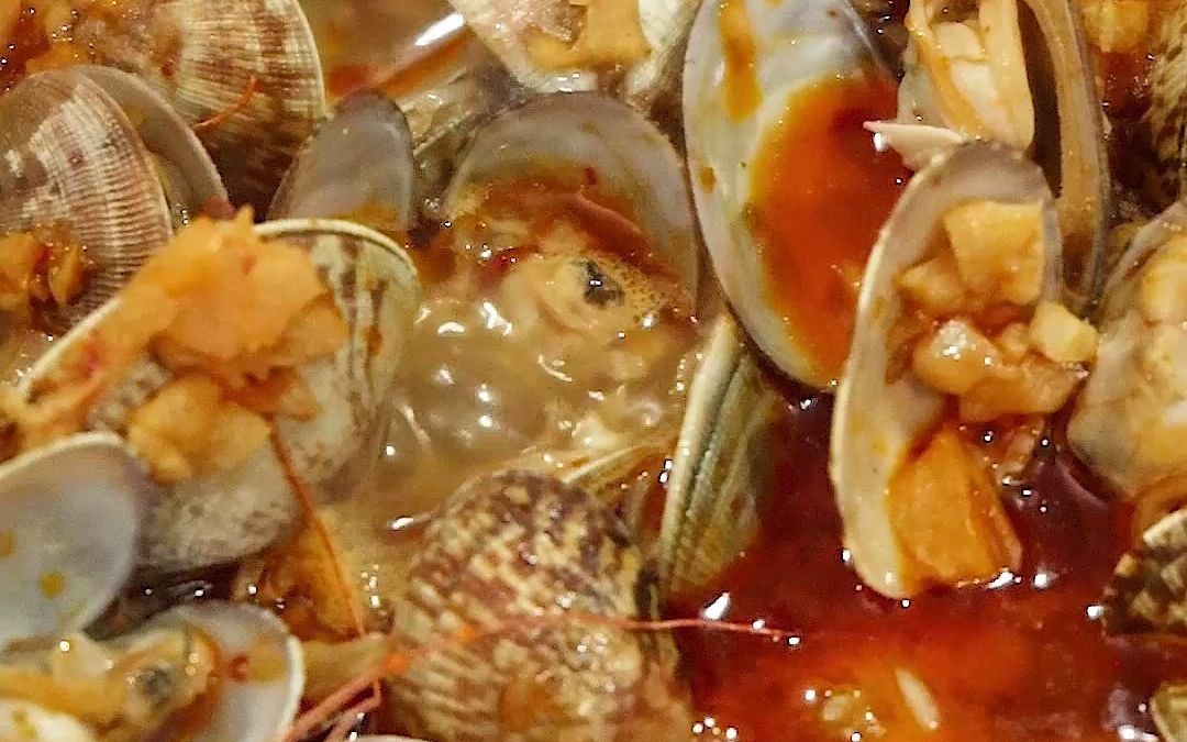 "Food". Eating show of various raw seafood.