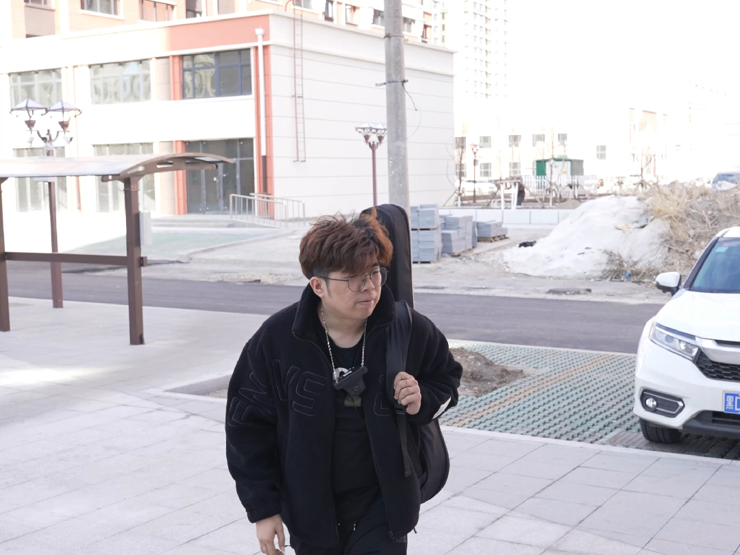 A one man band! A guitar restores the original song of Attention Broken Eyebrow