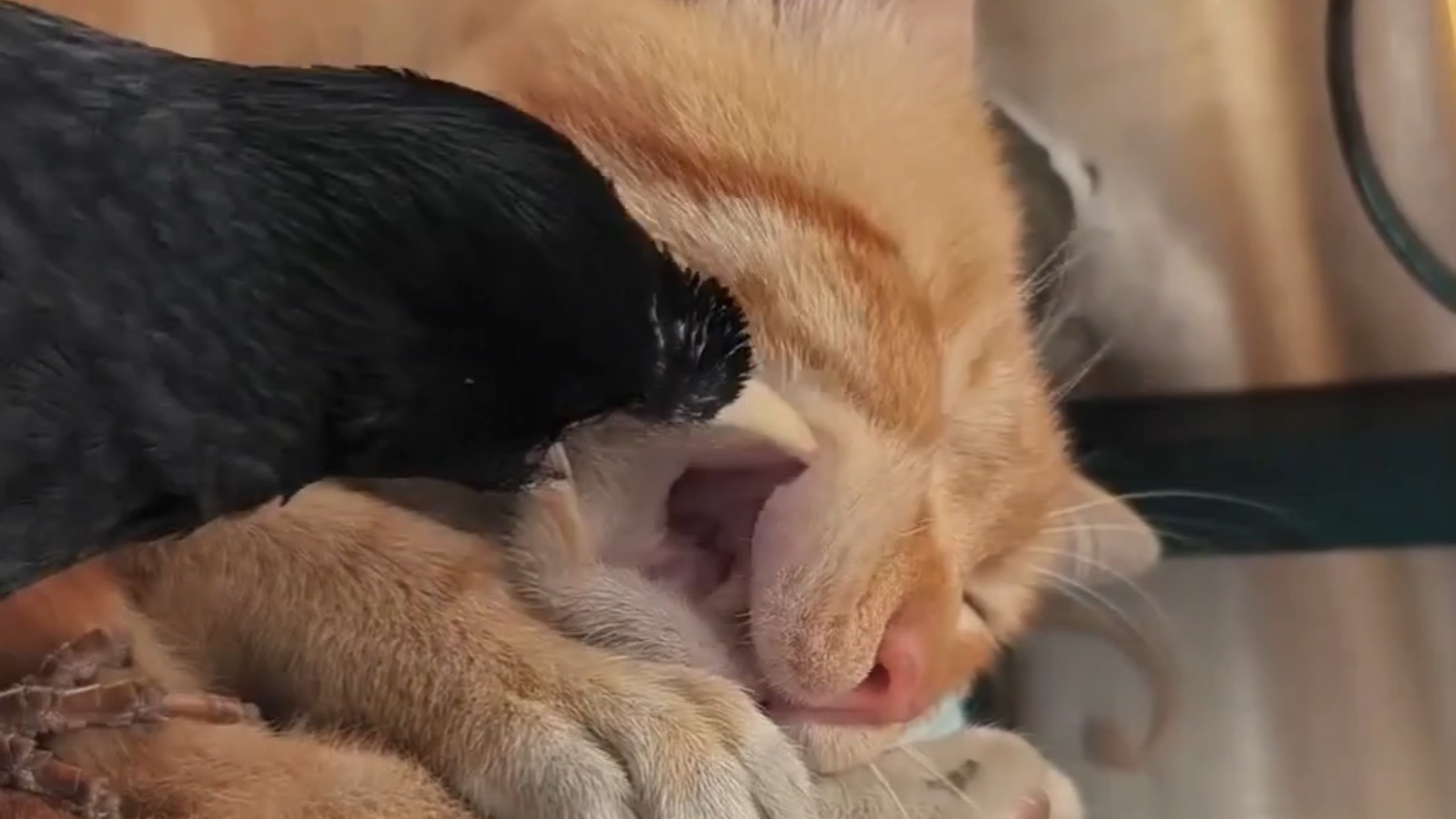 The orange cat is really scared this time