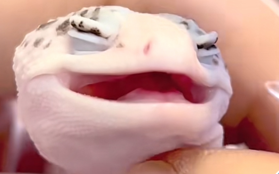 I Put My Hand To Eyelid Gecko's Lips When It's Drinking