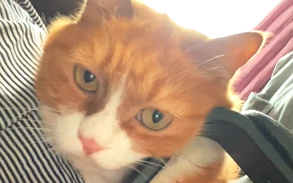 As I approached the sleeping gas tank cat, she immediately woke up and greeted me
