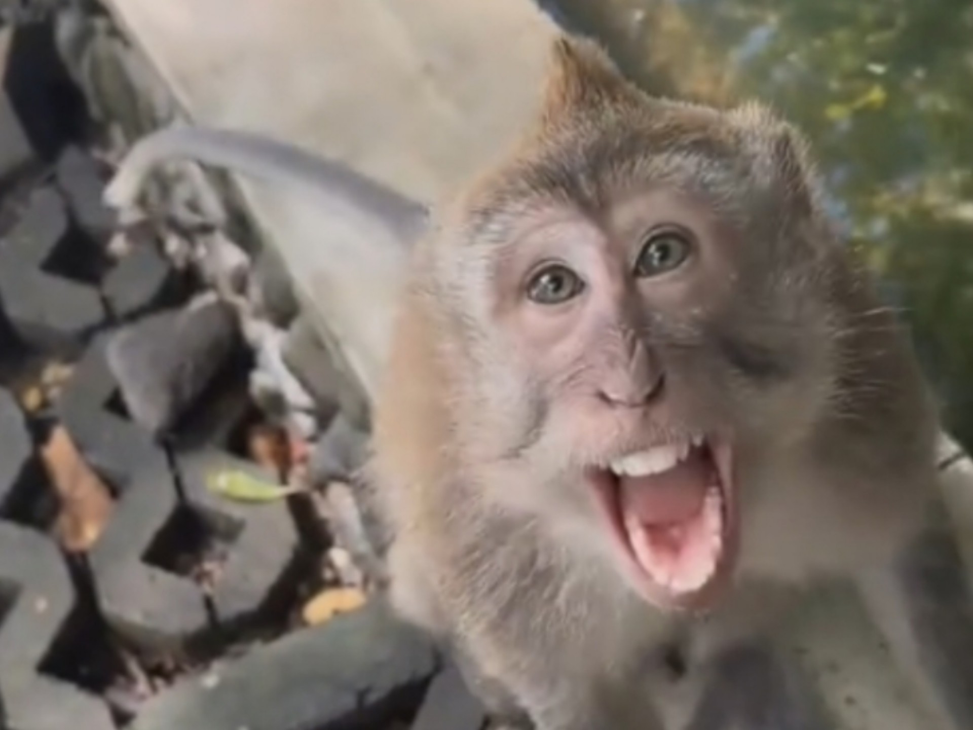 【Animal】A baby monkey sticks to a monkey that isn't its mother