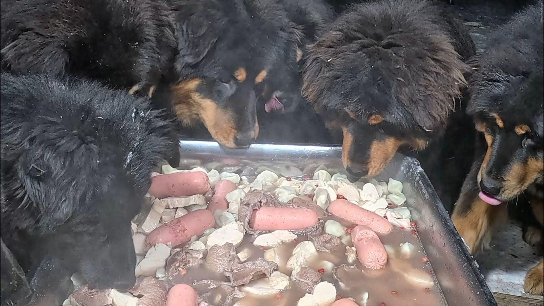Mastiffs at the mine, drinking water for the first time
