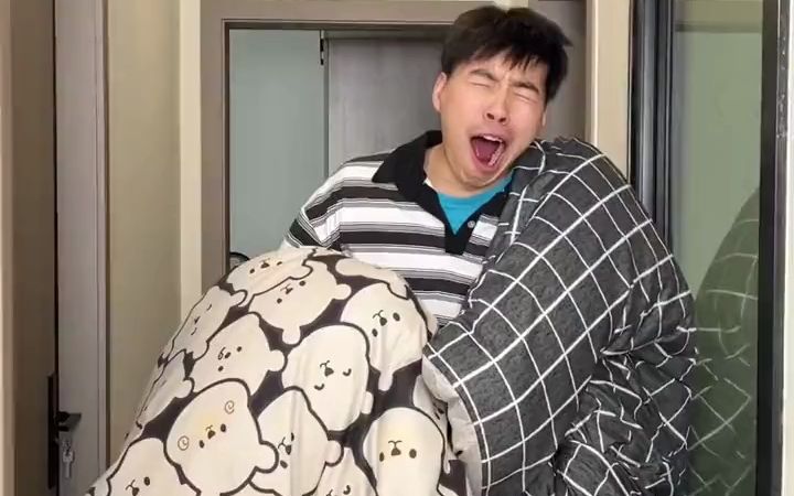 The cat was so cold that he couldn't help but cover him with a quilt!