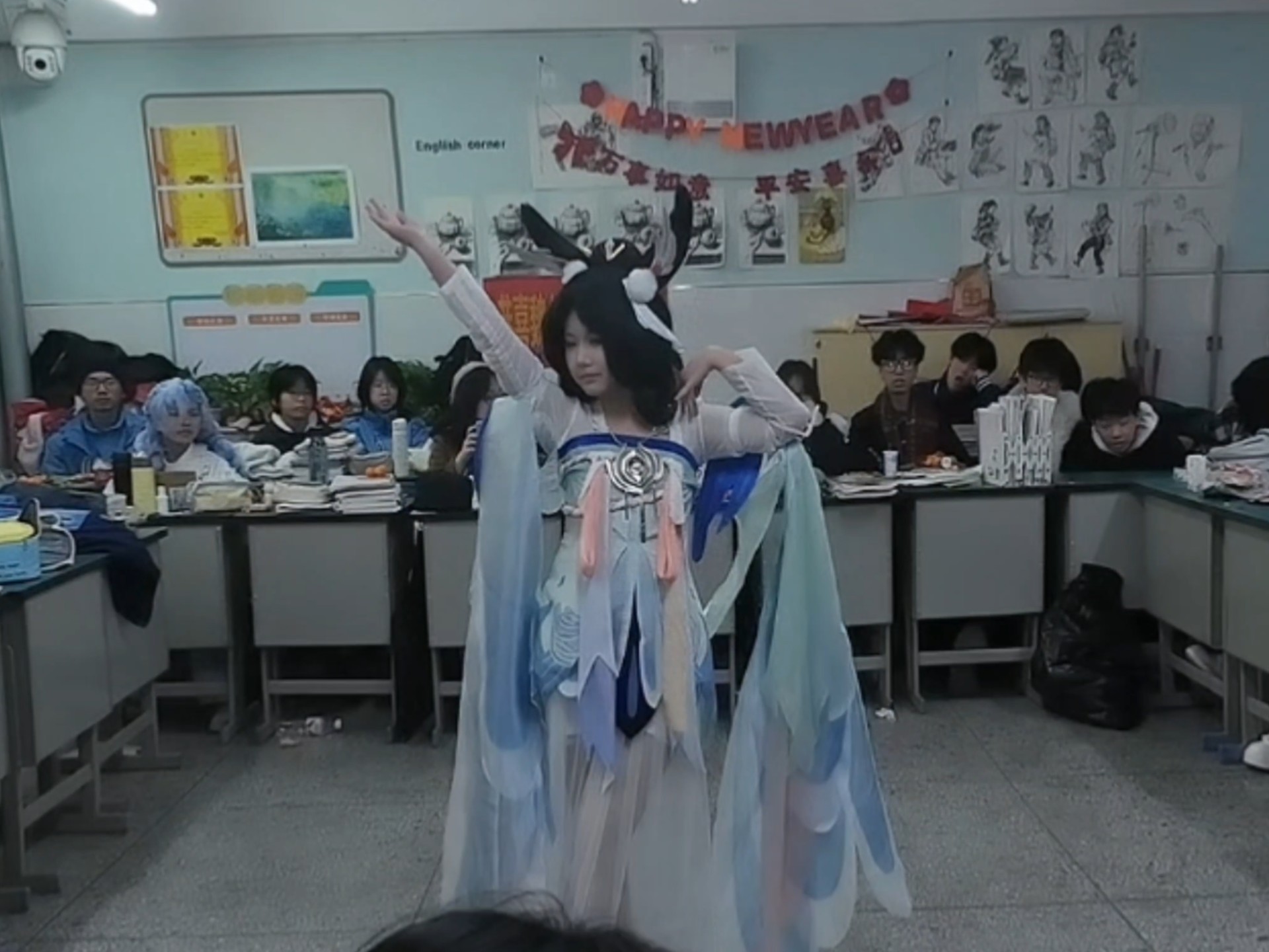 Schoolgirl's class meeting performance