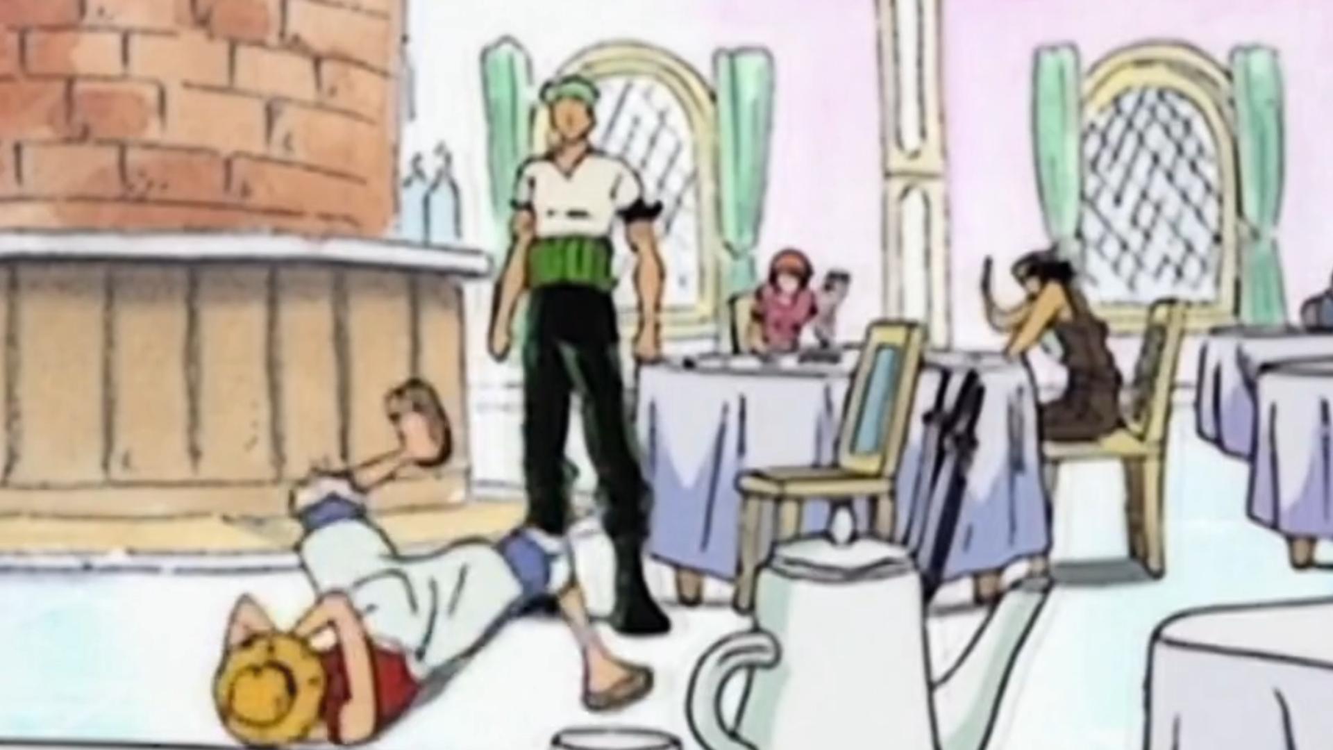 Zoro ate slowly at first, until Luffy taught him a lesson!