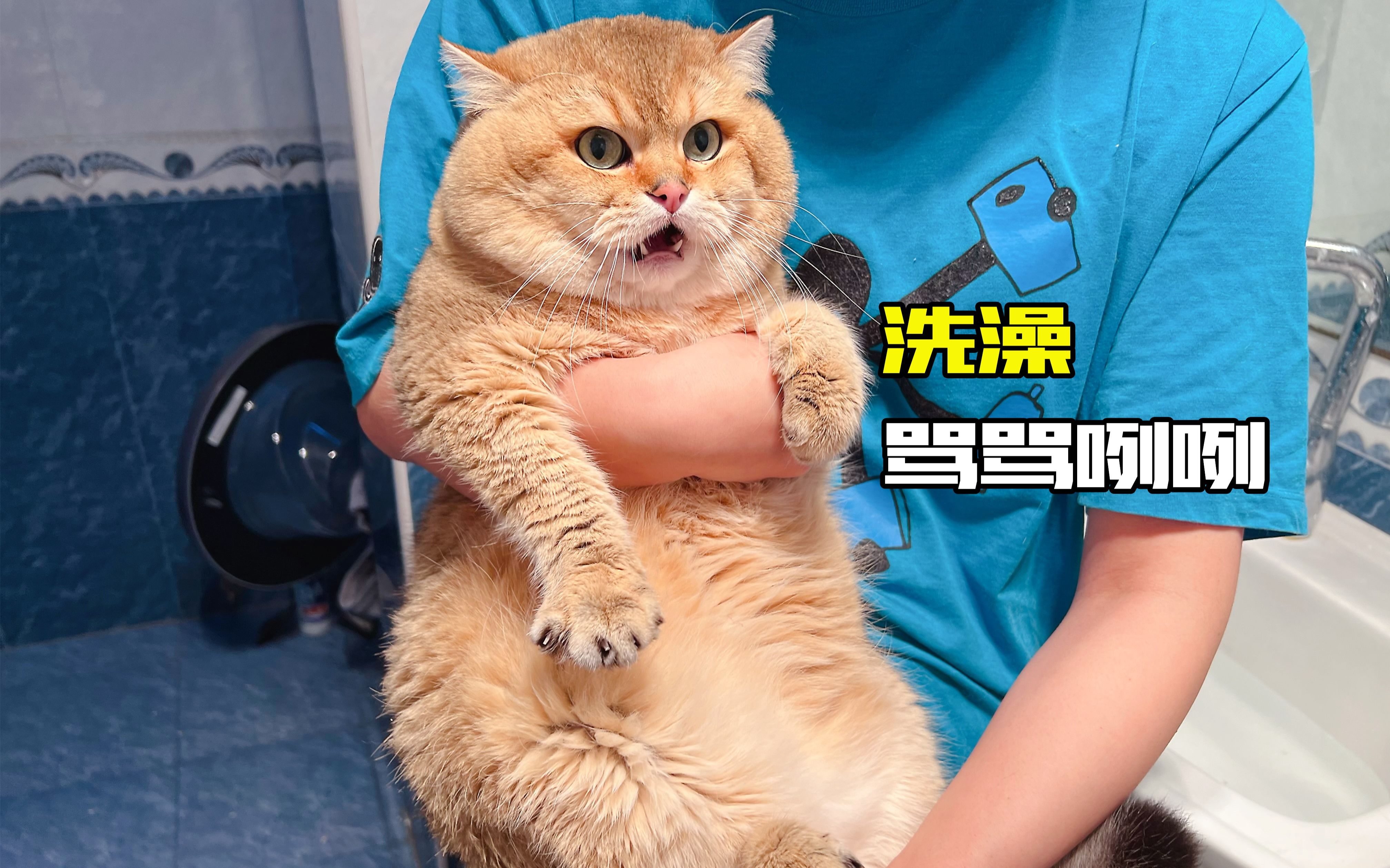[Cat] My orange cat takes a bath for the first time after 3 years