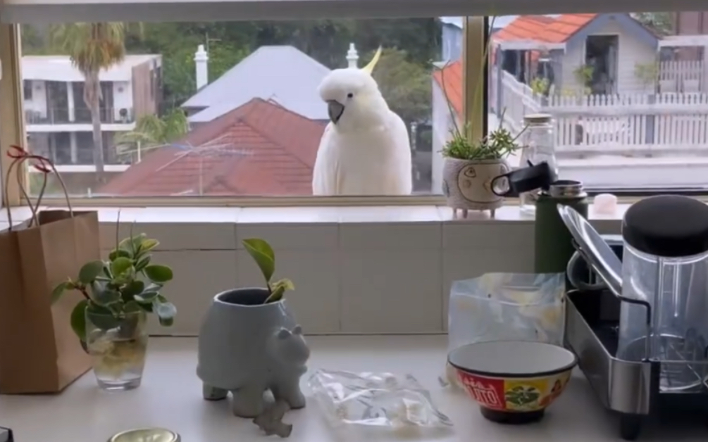 When the parrot realizes that it is not the enemy, but the owner's hand: