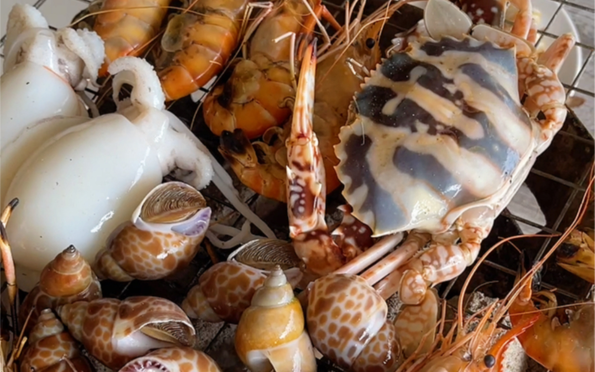 Seafood turkey noodles from a small fishing village—freshly caught and eaten right away, so incredib