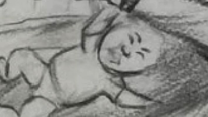 The daughter doodles a few strokes, and dad turns it into a painting.