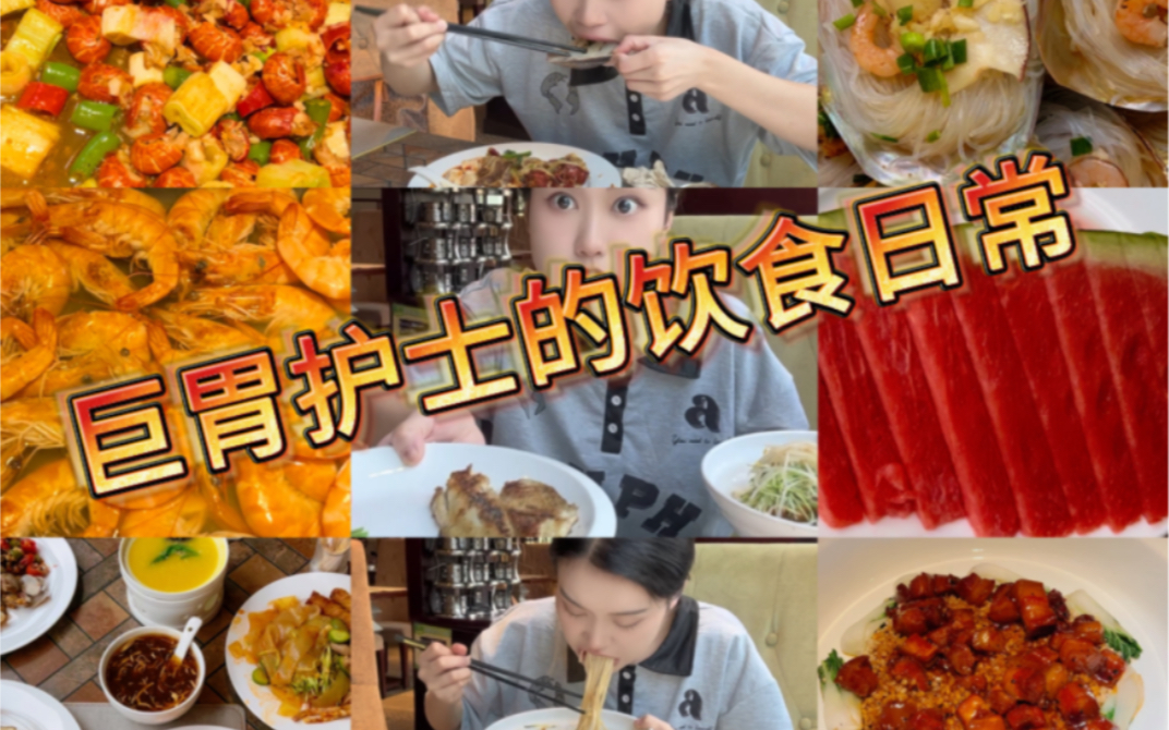 The beautiful nurse ate three servings of food after finishing her night shift...