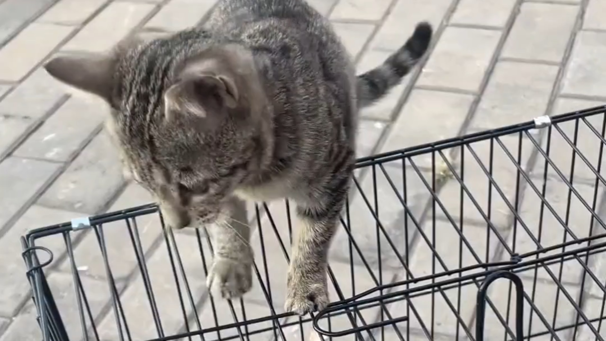 The little cat isn't greedy—it only grabs one shrimp at a time—but it made seven round trips this af