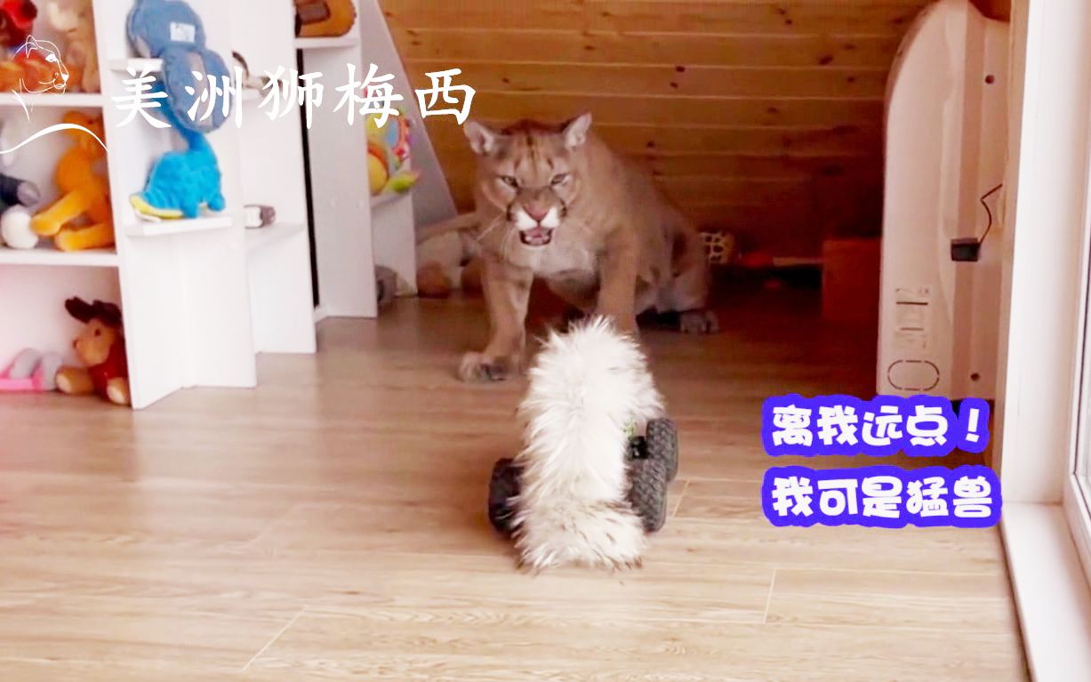7-year-old cheetah is so naughty that she dares to kick a cougar in the butt