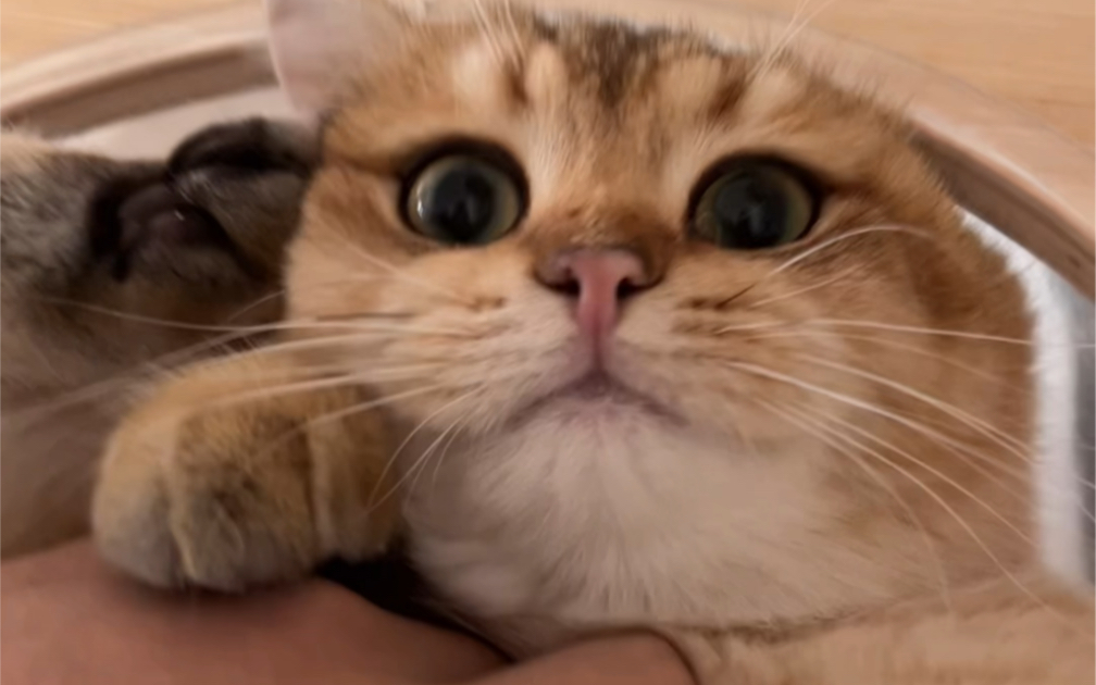 Golden Shorthair Cat's First Time Seeing Another Golden Shorthair Cat