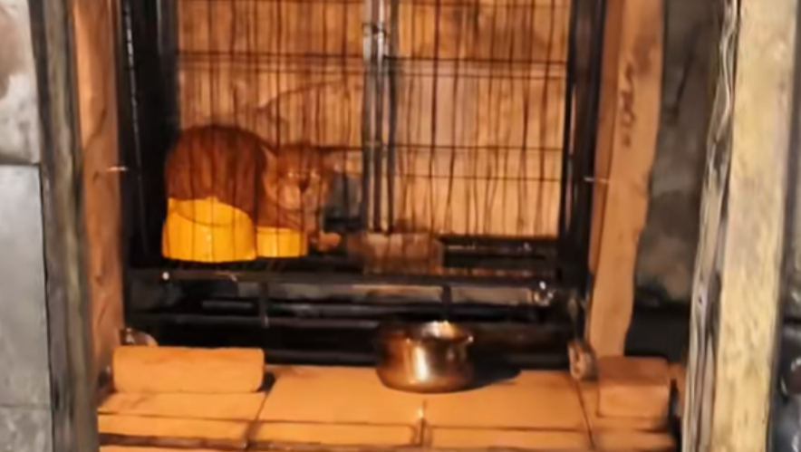 The man broke the gang rules and was locked in a dog cage by the boss.