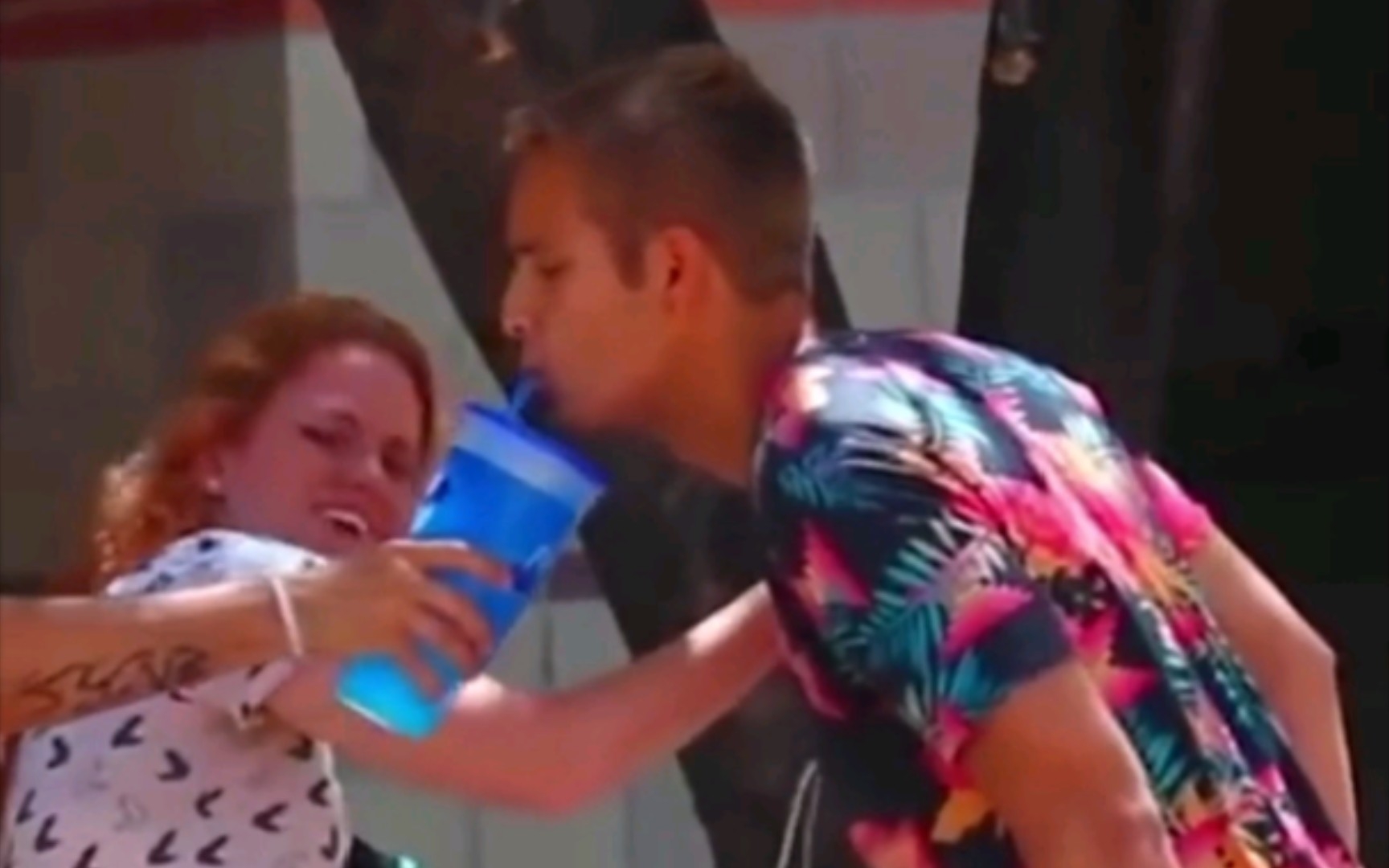 Original tongue kiss, mutual tasting kiss, apple-flavored kiss