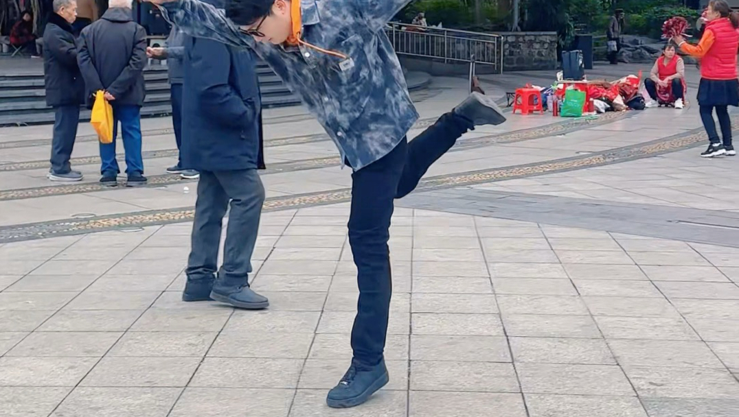 Xiaotang performs another set of retro break dance moves, and finally the windmill classic reappears