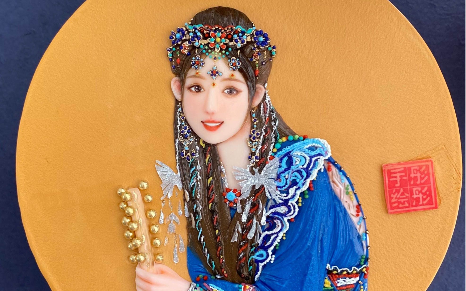 #Cream frosting embossed hand-painted cake#Ancient style hand-painted cake