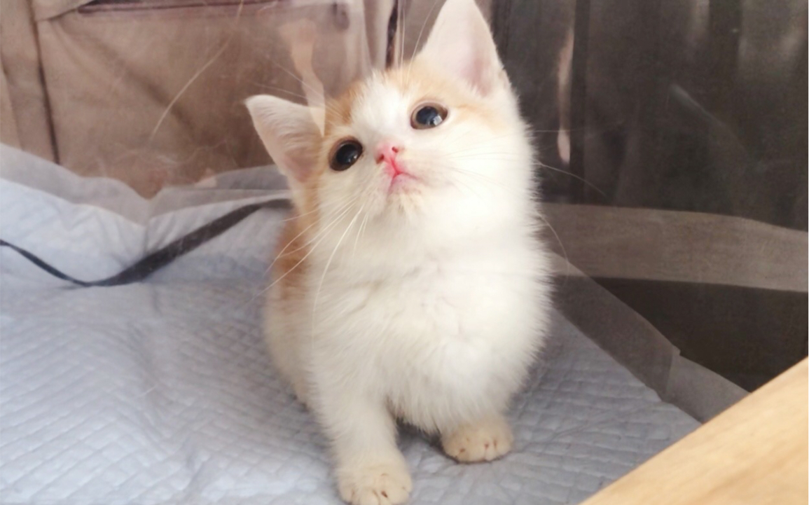 The first time for a one-month-old kitten eats meat!