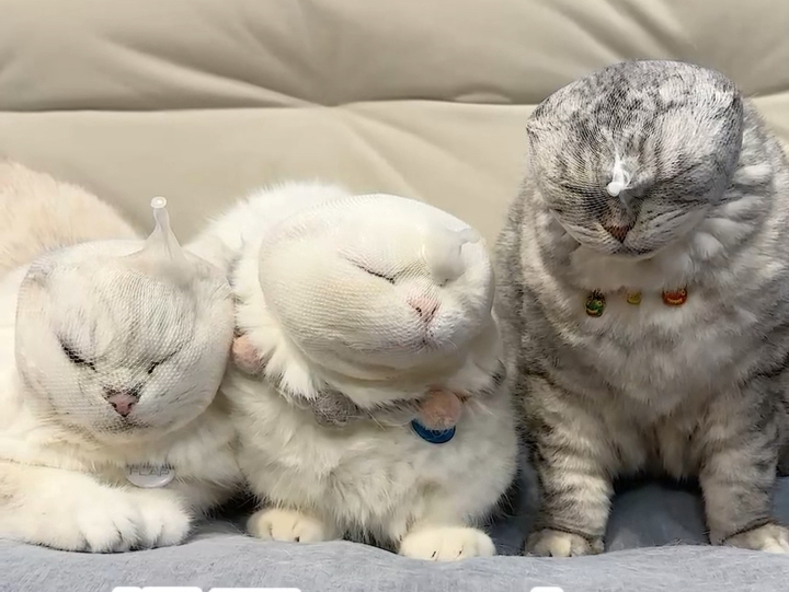 Bathe 3 cats at home at the same time to see who is the best behaved?